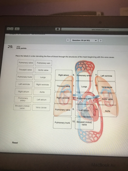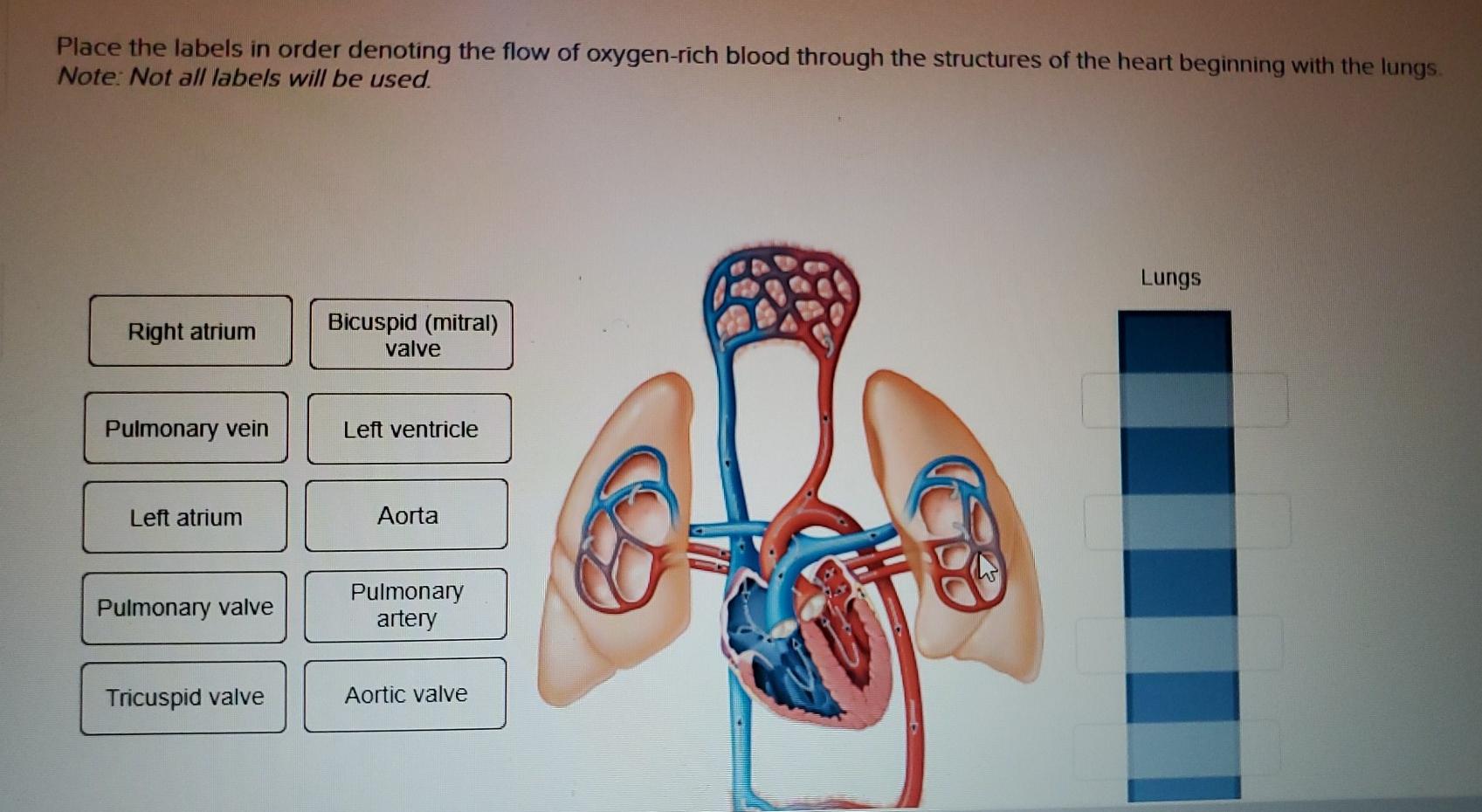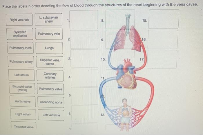 Solved Place The Labels In Order Denoting The Flow Of Blood Chegg Com